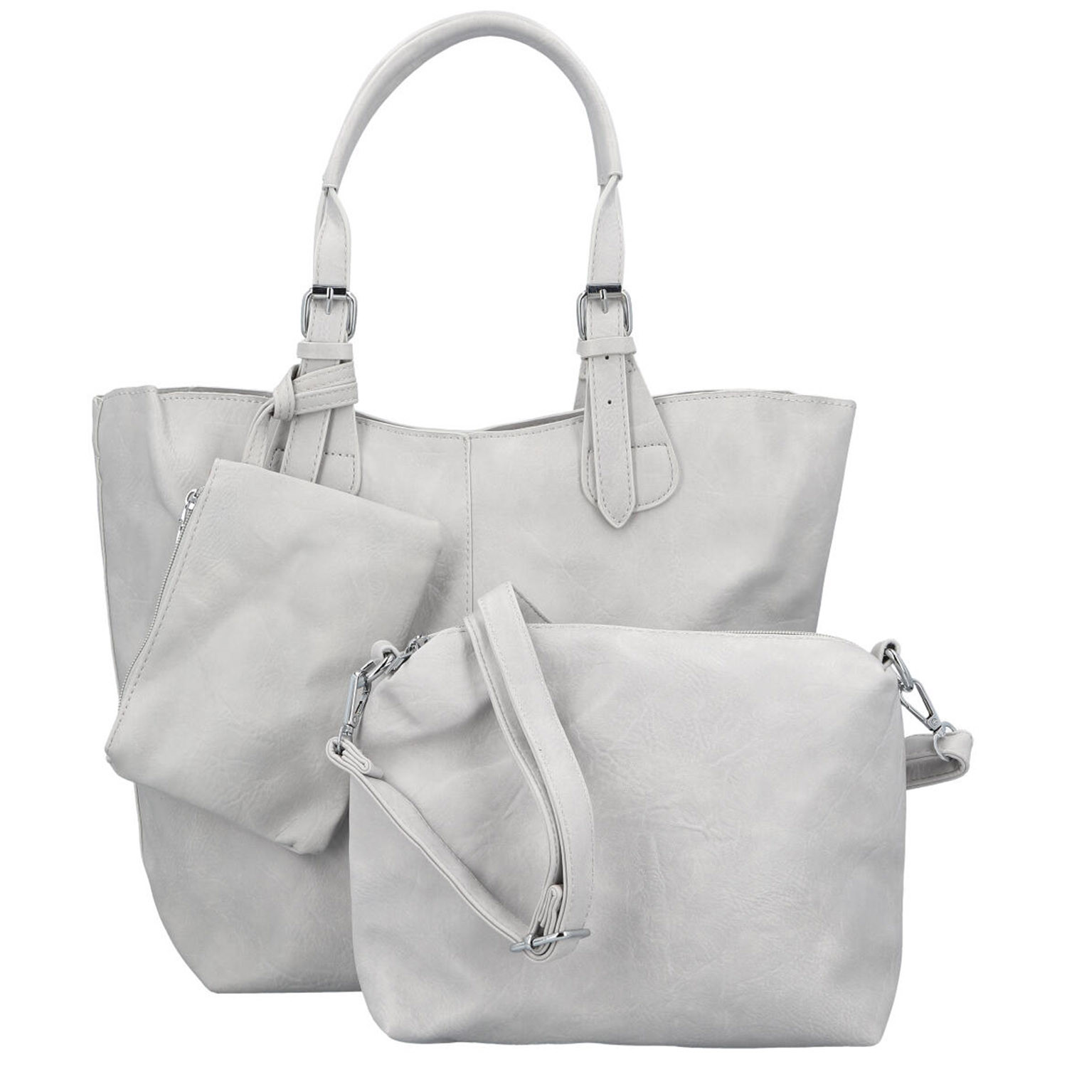 Hlavní kapsa na zip ukrývá chytré řešení, jednoduše do ní vložíte menší crossbody tašku, u které odepnete dlouhý popruh a rázem z ní máte praktický organizér na všechny nezbytnosti. Součástí setu je také malá kapsička na zip, ideální na klíče, mince nebo drobnosti, které chcete mít hned po ruce.