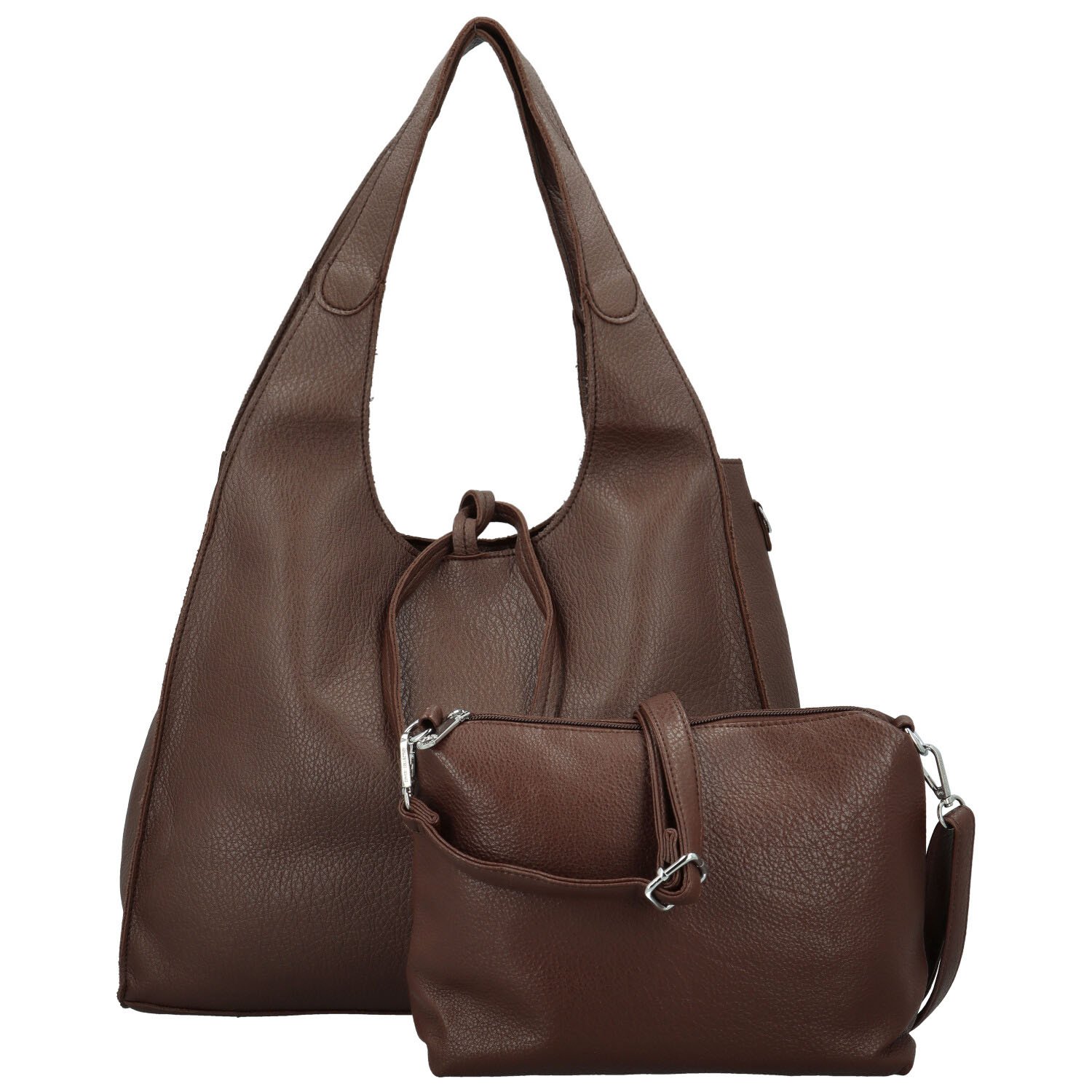 Velká kabelka má pevné uši pro pohodlné nošení na rameni, zapíná se na zip a uvnitř prostor doplňují kapsičky v podšívce. Pro větší bezpečí a elegantní vzhled je hlavní část stažena také koženkovými šňůrkami.