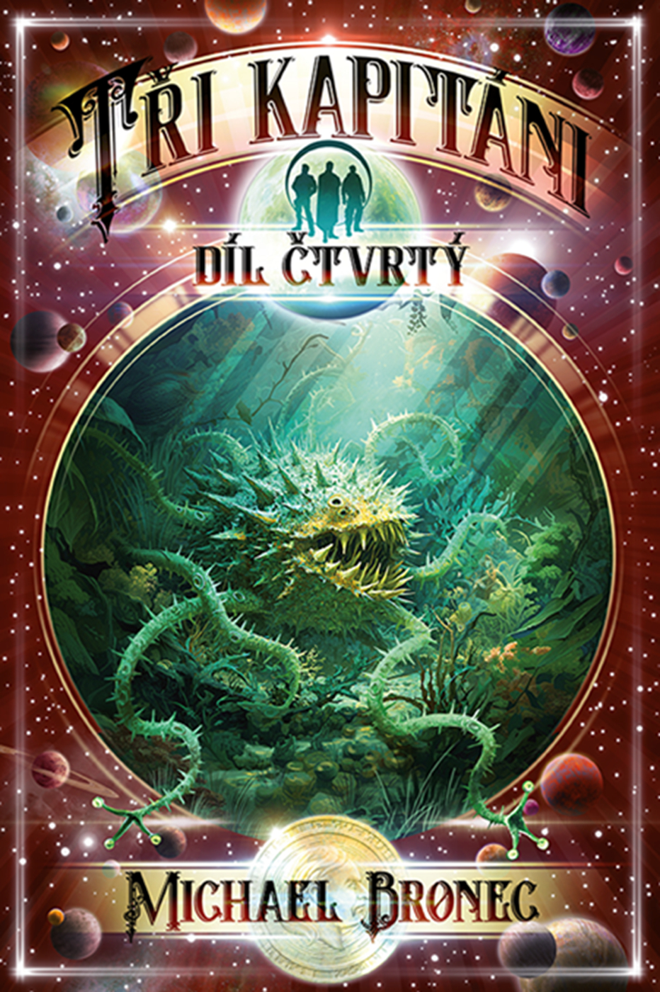 Legenda se vrací! "Rozpadli jsme se jako rocková kapela!" říká o Třech kapitánech Filip Fix, ale sám svá slova popírá, když od Koordinátora Republiky přijímá těžký úkol. Dokáže mladý astrobiolog nalovit exo-stvůry na podivné planetě porostlé džunglí, s neméně zvláštním názvem Tenochtitlán? Hvězdný koráb Pegas s ještě žhavými tryskami klesá na kosmodrom u hlavního města. Nastává další dějství dechberoucího příběhu Tří kapitánů! Čtvrtý díl úspěšné trilogie, o níž samotný J. Cimrman pravil: "Jen tři kapitáni, Michaeli? A není to málo?" "Ne, není," opáčil jsem tehdy. "Já ti do tvé tvorby taky nekecám! A je tu ještě Alisa!"