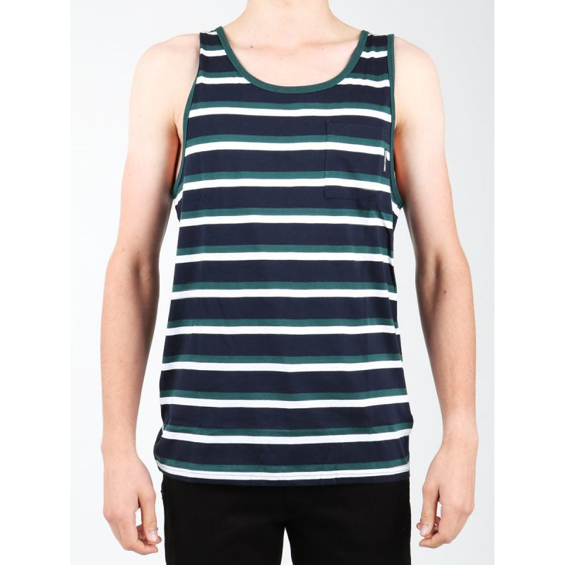 -Pánská pruhovaná košile bez rukávů -Kulatý výstřih -Kapsa na hrudi -Materiál: 100% bavlna