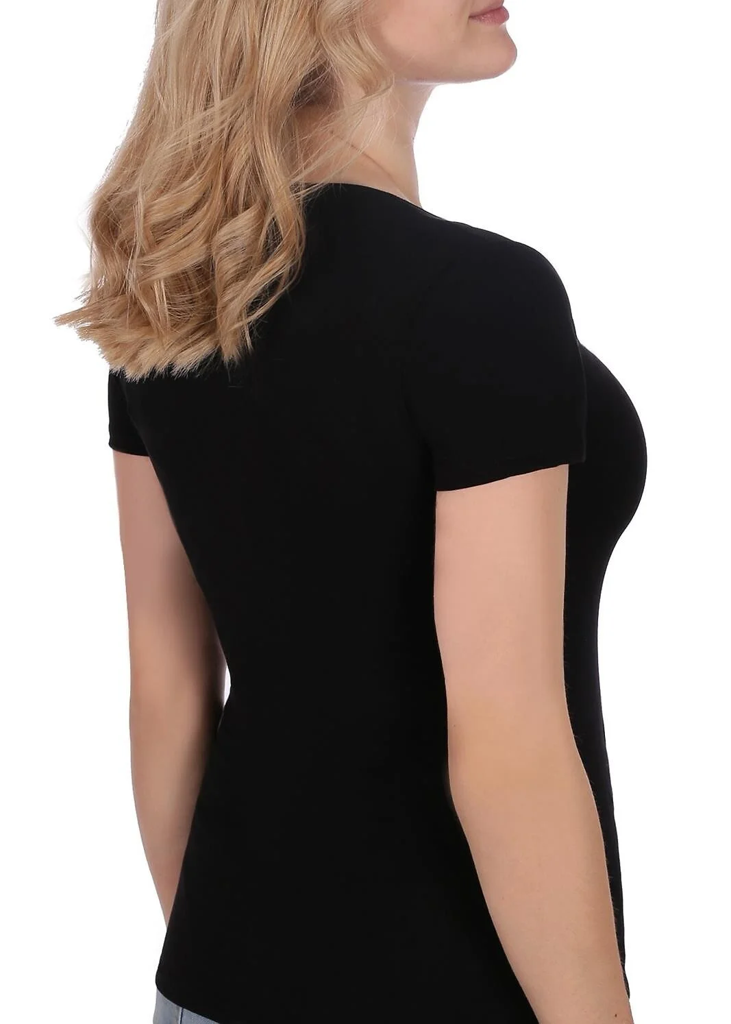 Dámské bavlněné tričko - krátký rukáv - kulatý výstřih - přiléhá k tělu - zabalené v plastovém sáčku Složení: 95 % bavlna, 5 % elastan