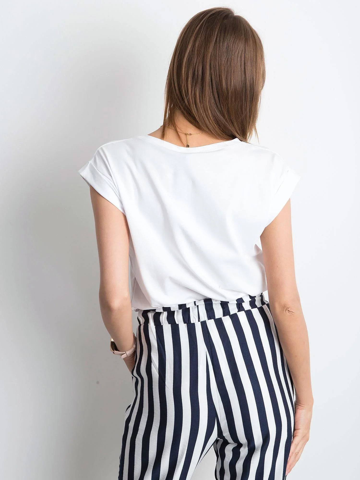 Dámské hladké bílé tričko. složení látky: 90 % bavlna, 10 % elastan způsob praní: praní v pračce na 30 °C Modelka má na sobě velikost S. Rozměry modelky: výška 176 cm, prsa 85 cm, pas 64 cm, boky 92 cm. Rozměry trička velikosti S měřené na plocho: šířka v podpaží - 48 cm, celková délka - 62 cm