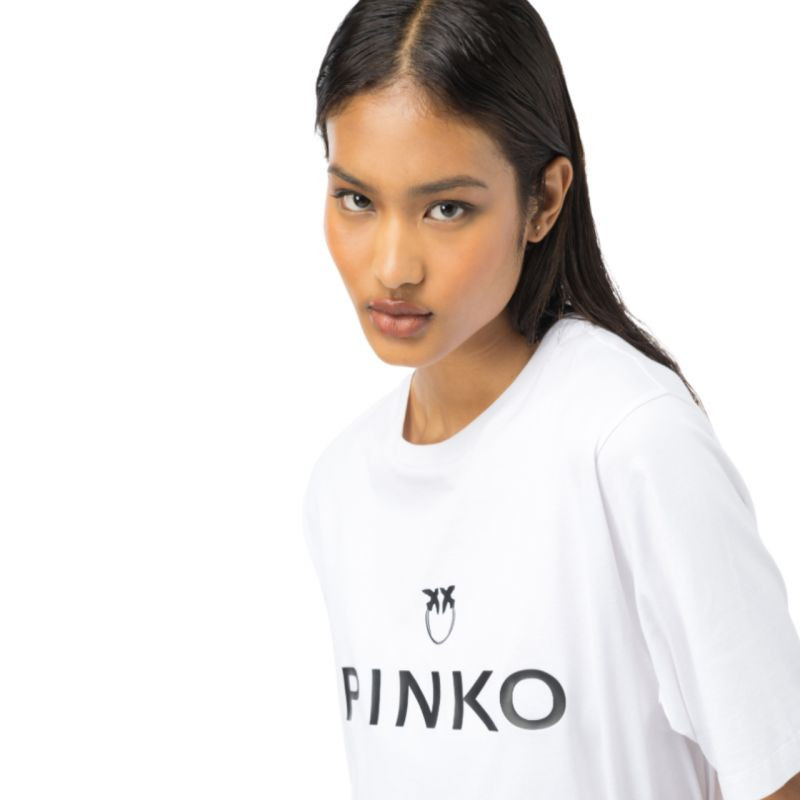 Pinko Tričko s logem Scanner W 101704A12Y Vlastnosti: tričko s krátkým rukávem a mírně nadměrným střihem vyrobeno z bavlněné žerzejové příze, která byla speciálně upravena, aby se odstranilo chmýří a získala hladší vzhled kulatý výstřih krátké rukávy logo výrobce materiál: 100% bavlna Barva: bílá