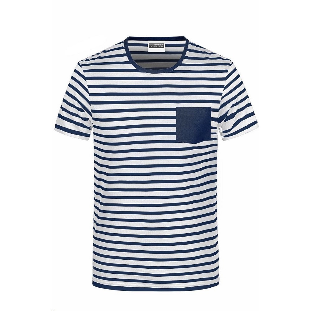 Triko BA krátký rukáv 140g/m2 pruhované Materiál: 140g/m2, 100% česaná Bio bavlna předepraná proti srážení, single jersey Kulatý výstřih, manžety s elastenem, klokaní kapsa, odtrhávací štítek Velikosti: S-M-L-XL-XXL BARVY: white/navy , red/ white , atlantic/white , navy /white