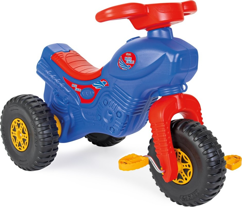 Tříkolka dětská, šlapky umístěny na předním kole. Nosnost 35 kg, ergonomický design. Mechanický klakson.