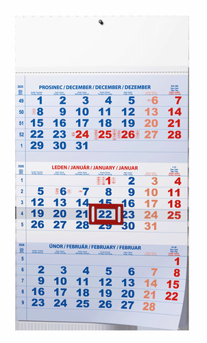 Tříměsíční kalendář 2026 modrý - nástěnný kalendář