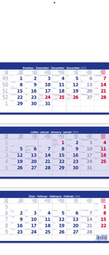 Kalendář nástěnný 2026 - Tříměsíční skládaný modrý