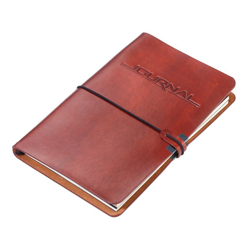 Elegantní zápisník v odolných deskách s embossovaným nápisem "Journal“. Obsahuje dva sešity pro denní poznámky, týdenní plány, kontrolu cílů nebo nákupní seznamy. Stránky z FSC® papíru s tečkovanou lineaturou, perforace pro snadné vytržení listu. Fixace zápisníku a pera pomocí kulaté gumičky. • rozměry: 210 x 146 x 12 mm • materiál desek: imitace kůže • 2 × 36 perforovaných listů, formát A5 tečkovaná lineatura