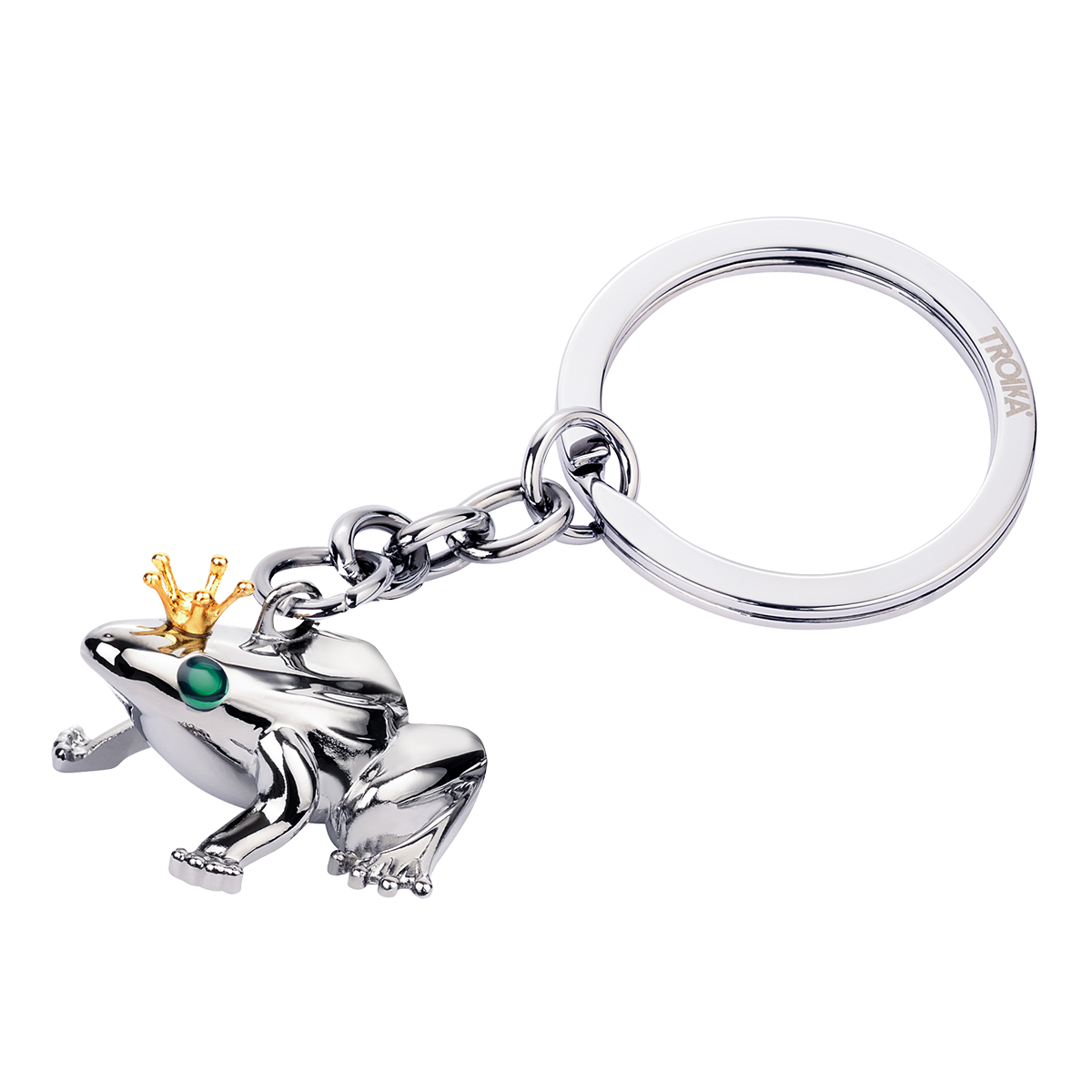 Klíčenka s přívěskem žabky s korunkou, inspirovaná pohádkou Žabí princ. Kombinace zlaté, zelené a stříbrné barvy.rozměry: 78 x 35 x 20 mmhmotnost: 26 gmotiv žabky s korunkouvhodná i jako dárekobsah balení: 1 ks