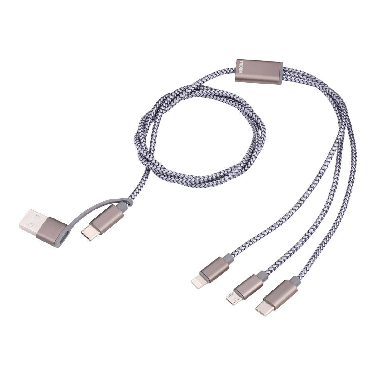 Textilně opleteným kabel, který umožňuje nabíjet až 3 zařízení současně – rychle, spolehlivě a stylově. Ideální společník na cesty i do kanceláře.rozměry: 1000 x 16 x 5 mm3v1 kabel: USB / USB-C → Micro-USB / Lightning / USB-Cumožňuje současné nabíjení až 3 zařízení, podpora rychlého nabíjení (až 5V / 2,5A)délka kabelu: 1 mtextilní opletení pro delší životnostbarva: šedáobsah balení: 1 ks