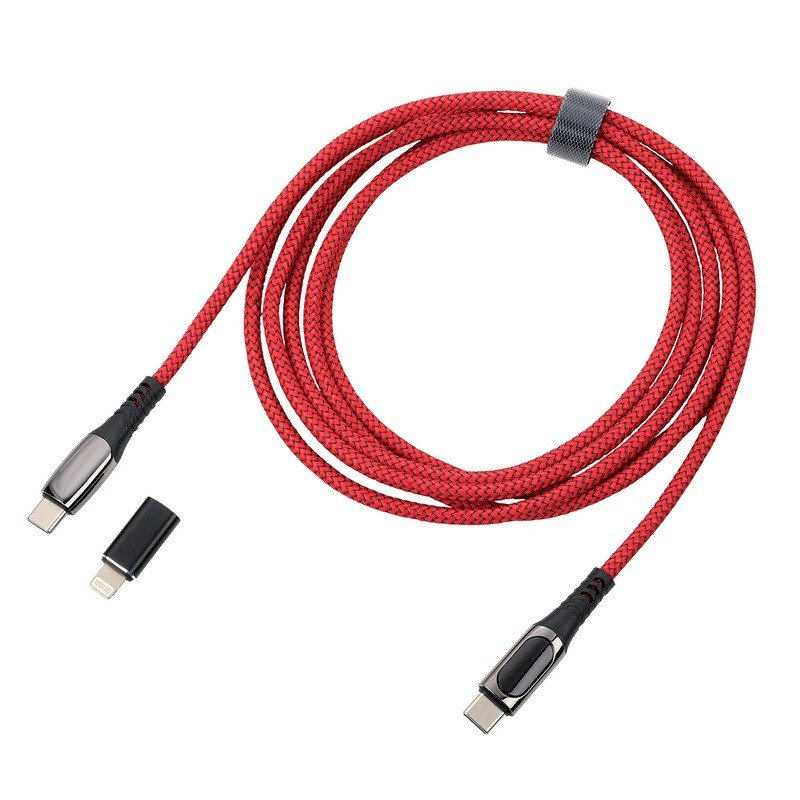 Nabíjejte rychle, stylově a bez omezení. Kabel o délce 2 metrů pro maximální flexibilitu. Technologie USB-C Power Delivery 100 W pro extra rychlé nabíjení a přenos dat. Vhodný pro smartphony, tablety i notebooky. Je odolný, stylový a vyrobený z recyklovaného polyesteru. • rozměry: 2000 x 12 x 9 mm • USB-C - USB-C kabel pro přenos dat a extra rychlé nabíjení smartphonů, tabletů nebo počítačů, digitální displej • výkon 100 W s technologií Power Delivery 20 V / 5 A • rychlé nabíjení a přenos dat • extra dlouhý kabel pro maximální volnost během používání • robustní textilní opletení z recyklovaného polyesteru (mesh struktura), kovové zakončení pro dlouhou životnost • barva: červená