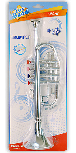 Trumpeta plastová kovově lesklá se 4 klapkami. Vyrobeno v Itálii.