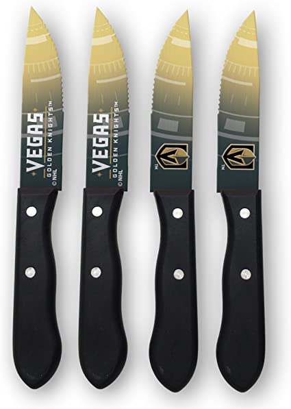 Sada Nožů Vegas Golden Knights 4 Piece Steak Knife Set Material: 100% nerezavějící ocel Polypropylenové držadla nožů Oficiální produkt NHL dovezený z USA. Zakupte produkt TSV Sada Nožů Vegas Golden Knights NHL 4 Piece Steak Knife Set z kategorie KLUBY NHL | VEGAS GOLDEN KNIGHTS od výrobce TSV za cenu 599,00 Kč.