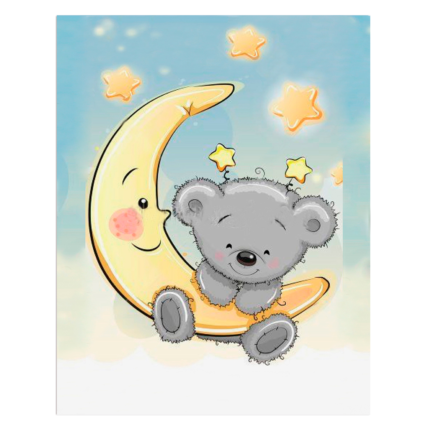 Antistresové omalovánky TSvetnoy TSvetnoy, LC016e, Diamond painting - diamantové malování, 20 x 30 cm, Medvídek na měsíci