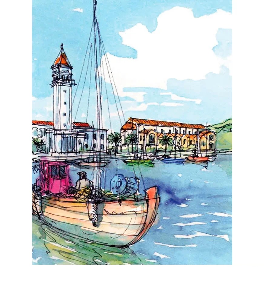 Antistresové omalovánky TSvetnoy TSvetnoy, LG064e, Diamond painting - diamantové malování, 40 x 50 cm, Přímořské městečko