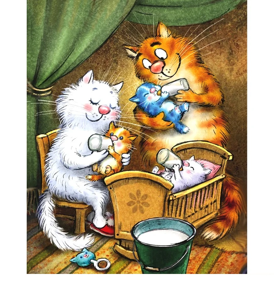 Antistresové omalovánky TSvetnoy TSvetnoy, LG277e, Diamond painting - diamantové malování, 40 x 50 cm, Kočky - Šťastná rodinka