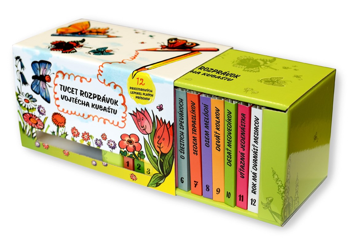 Dva rozhádané motýliky, štyri farebné pastelky, početná rodinka piatich prasiatok, sedem trpaslíkov či deväť kolkov a ďalší a ďalší hrdinovia krátkych rozprávok čakajú na malých aj veľkých čitateľov v čarovnom boxe. Čo tajomná škatuľa ukrýva? Dvanásť príbehov, dvanásť priestorových knižočiek ilustrovaných fenomenálnym výtvarníkom Vojtěchom Kubaštom, na knihách ktorého vyrastali celé generácie detí. Abrakadabra, škatuľa sa otvára a vy ráčte vstúpiť do rozprávky.