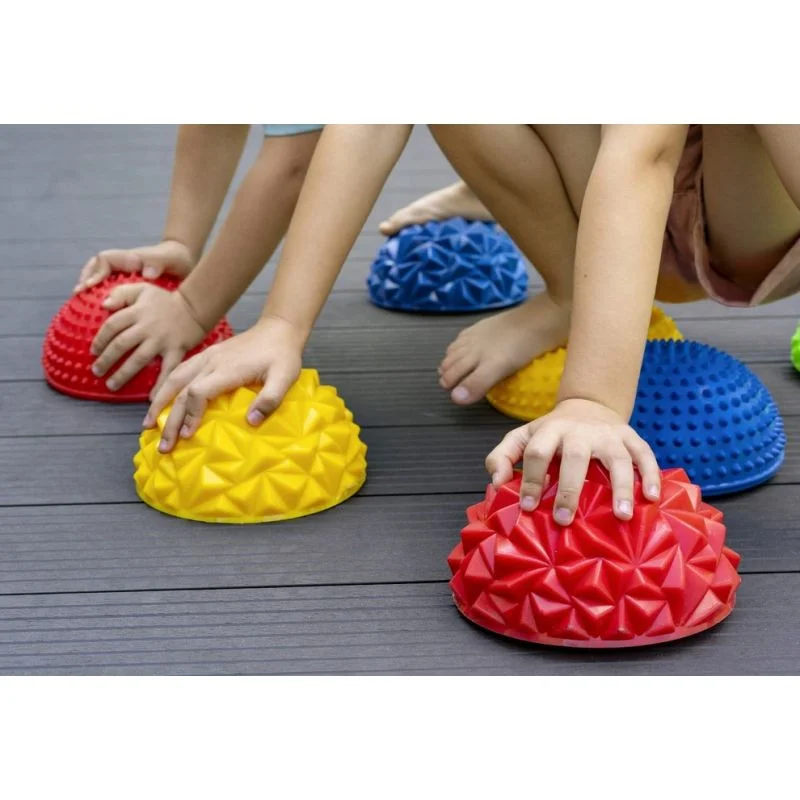 Diamantová smyslová hemisféra Tullo Vlastnosti: Diamantová smyslová polokoule Tullo Smyslová polokoule Tullo je skvělým doplňkem pro děti i dospělé. Je vyrobena z odolného materiálu, který neobsahuje BPA a těžké kovy. Používání polokoule má řadu zdravotních přínosů, jako je náprava vadného držení těla, cvičení rovnováhy, stimulace krevního oběhu, stimulace smyslových receptorů, léčba plochých nohou a valgozity dolních končetin u dětí, snížení svalového napětí. Velikost: 16 cm Barva: zelená