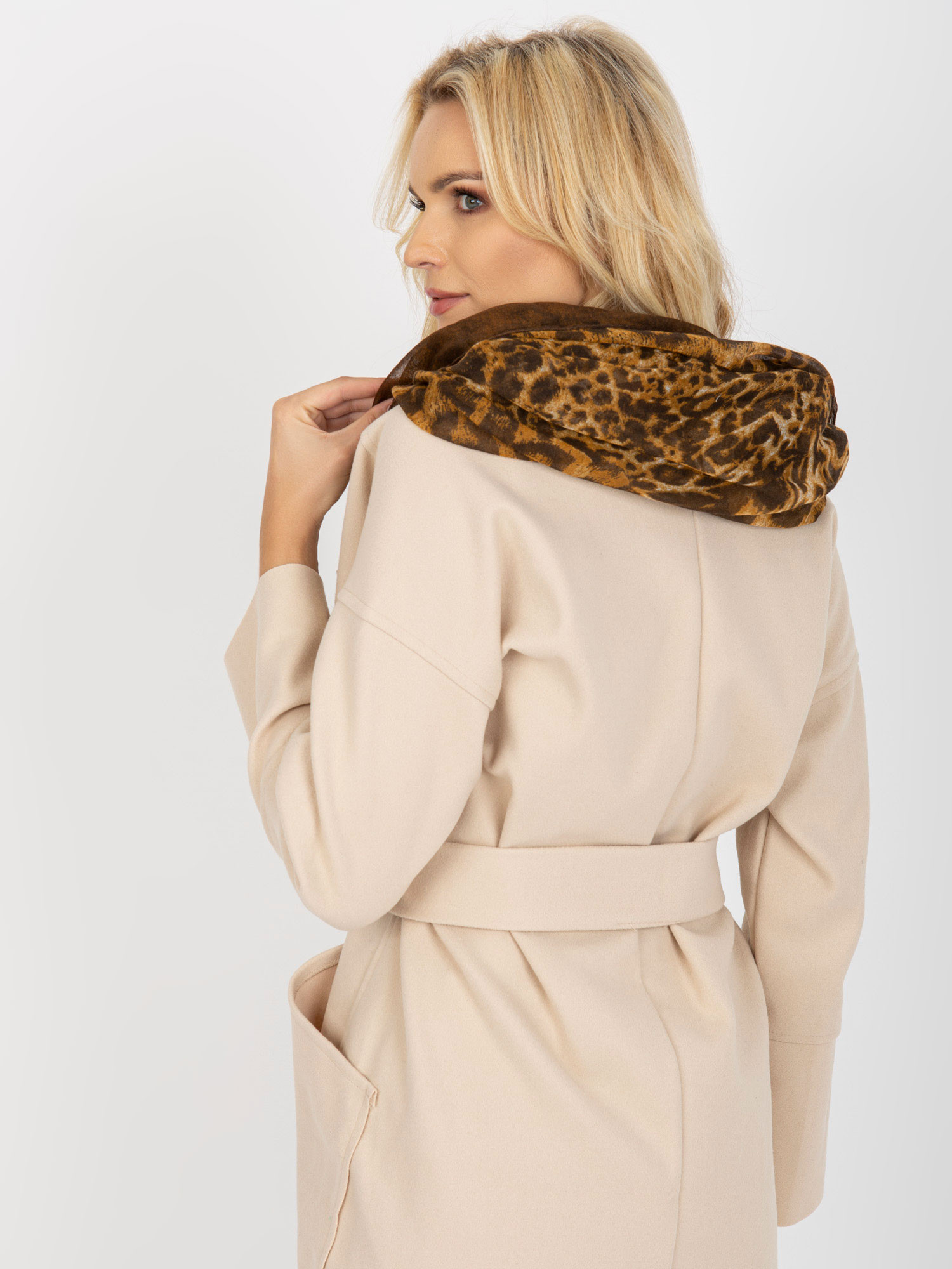 Velbloudí hnědá dámská šála se zvířecím vzorem . Kód produktu: AT-KM-241357.03P dominantní design: zvířecí motiv Rozměry: přibližně. 115 x 172 cm