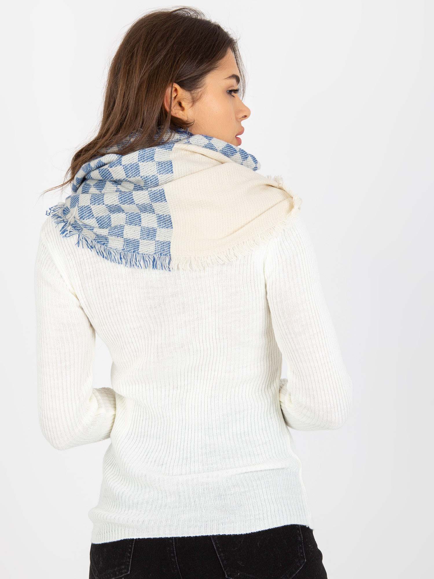 online Ecru-dark blue ladies' checked chimney. Kód produktu: AT-KM-9501.10 dominantní vzor: kontrola Rozměry: délka - 82 cm, šířka - 53 cm