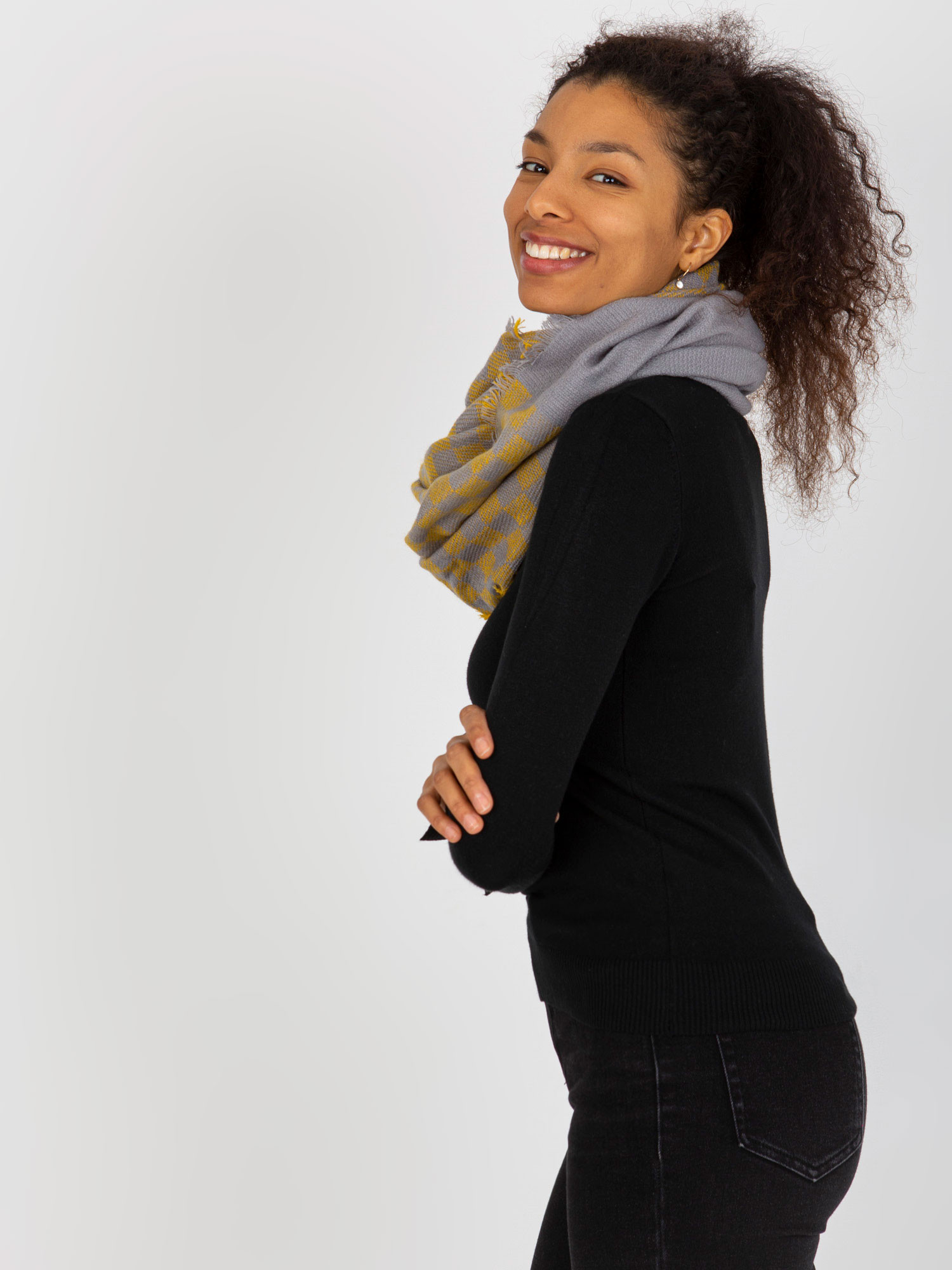 Šedožlutý dámský zimní komín s vlnou . Kód produktu: AT-KM-9501.10 dominantní vzor: kontrola Rozměry: délka - 82 cm, šířka - 53 cm