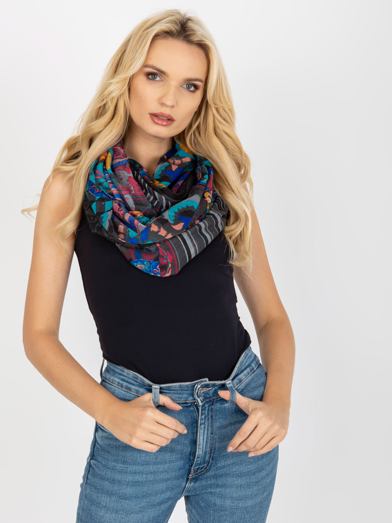Tmavě šedý dámský viskózový komínový závěs . Kód produktu: AT-KM-ENEC-A9.91 dominantní design: tisk Rozměry: přibližně. 176 x 92 cm