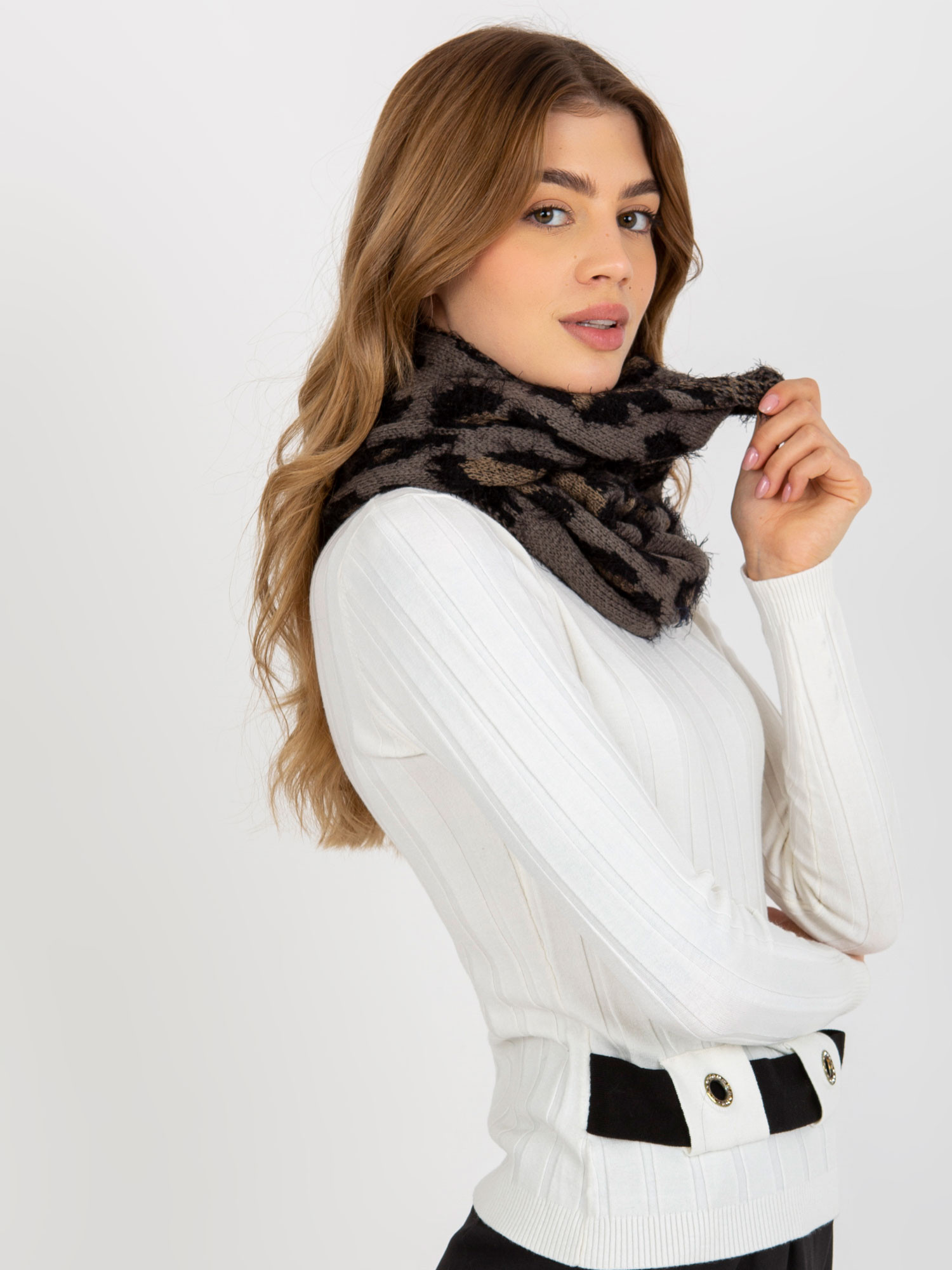 Šedočerný dámský strakatý zimní komín . Kód produktu: AT-KM-ENEC-B63-2.26P dominantní design: zvířecí motiv rozměry: délka - 140 cm, šířka - 27 cm