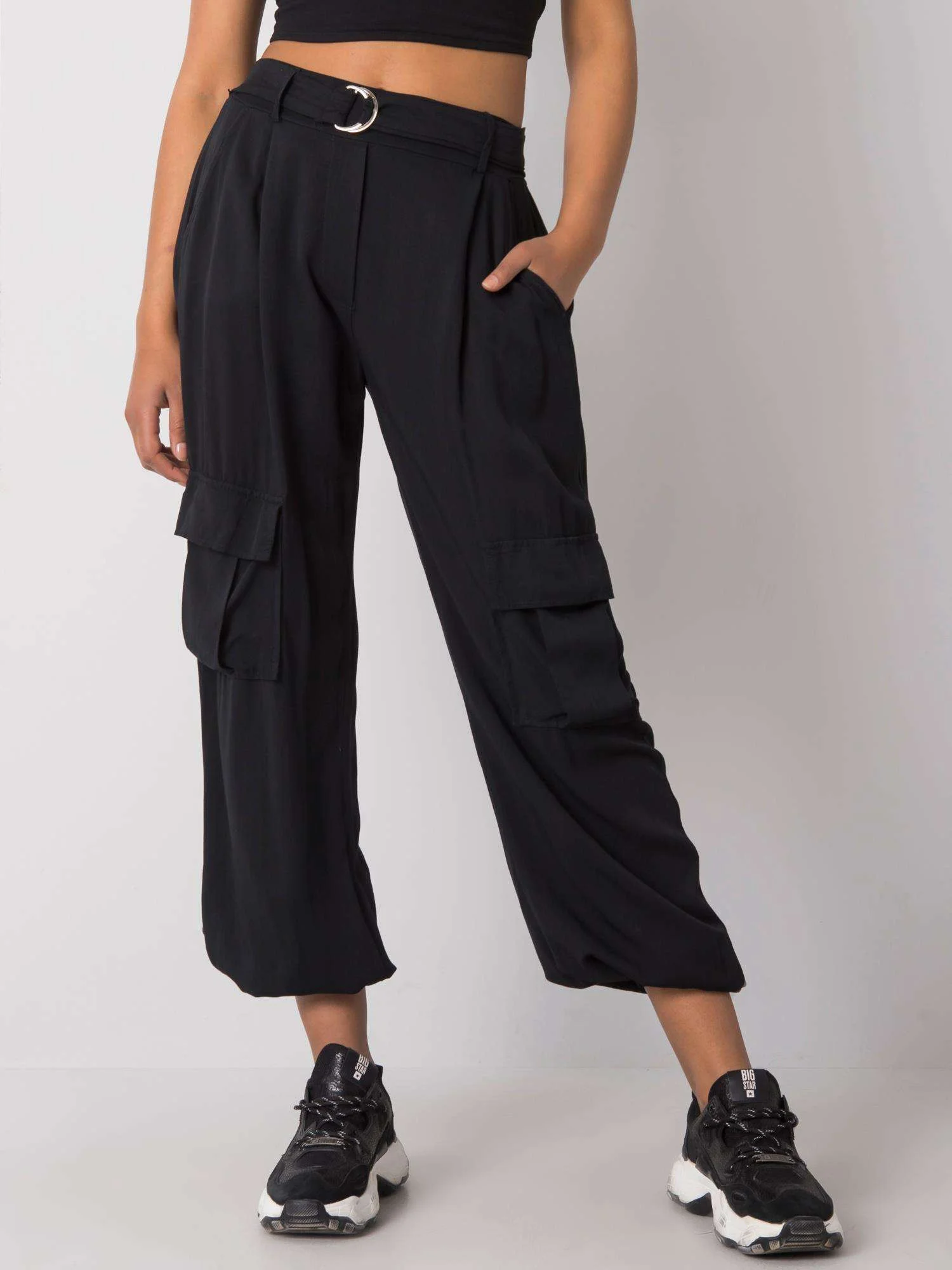 OCH BELLA Černé dámské kalhoty s kapsami. příslušenství: opasek složení materiálu: 100% viskóza způsob praní: praní v pračce na 30 °C Modelka má na sobě velikost S. Rozměry modelky: výška 174 cm, poprsí 84 cm, pas 60 cm, boky 90 cm. Rozměry kalhot ve velikosti S měřené na plocho: šířka v pase - 35 cm, délka - 94 cm, výška v pase - 30 cm Mezinárodní velikostVýškaObvod pasuObvod bokůVnější délka nohaviceDélka vnitřní nohaviceS36160-16872-80908774M38162-17278-86949075L40164-17484-901029476
