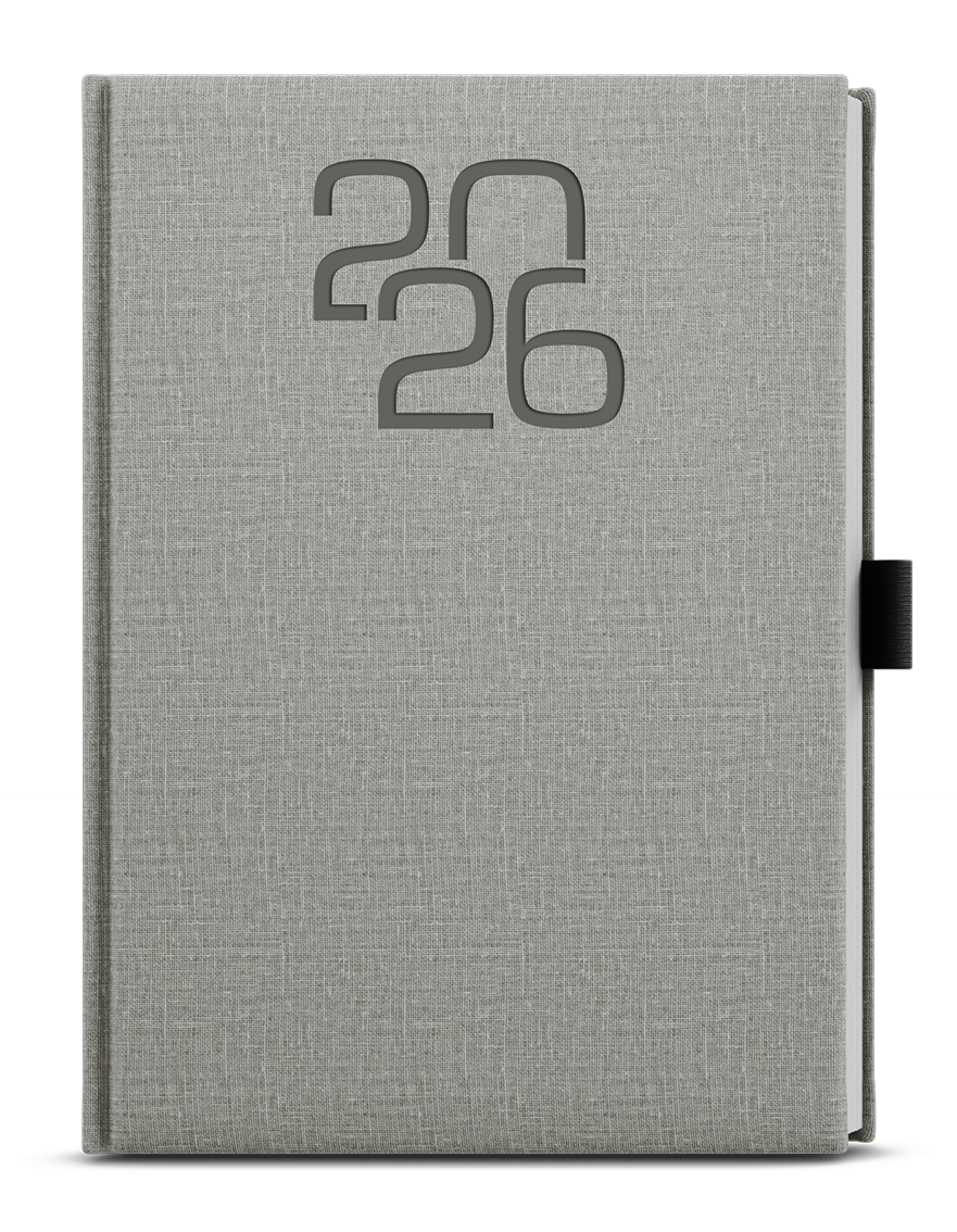 Týdenní diář ve formátu A5 vyrobený ze zajímavého materiálu s moderní ražbou roku a poutkem na tužku. Kalendárium: Týdenní Počet stran: 144 Formát: A5 Rozměr: 143 x 205 mm Papír: ofset, 70 g/m2 Materiál: strukturovaný materiál, ražba roku, jednostranná pěnová výplň desek Vazba: šitá V8, kapitálky, stužka, perforované rožky, mapa ČR a SR, vlepená kapsa, poutko na tužku Individuální úpravy Diář je možné individuálně upravit. Nejčastější úpravy jsou potisk (dle materiálu slepotisk, ražba, sítotisk apod.), vlepení reklamního listu, dotisk loga na vnitřní listy nebo třeba vložení diáře do papírové krabičky. Možné jsou samozřejmě i další úpravy. Obvyklý minimální počet diářů pro tyto úpravy je 30 - 50 kusů. V případě zájmu o jakoukoliv úpravu nás kontaktujte na e-mail zobac@papirnictvioskarek.cz nebo telefonicky na tel. 608 939 293. Rádi s Vámi probereme veškeré možnosti. Zakupte produkt Týdenní diář 2026 Baloušek A5 Oskar - Fabric šedá z kategorie Kalendáře, diáře | Diáře 2026 | Týdenní 2026 | Bezobrázková obálka od výrobce Baloušek za cenu 175 Kč.