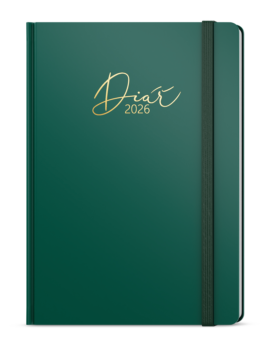 Týdenní diář v populárním rozměru B6 v krásných barevných kombinacích a efektní zlatou ražbou. Kalendárium: Týdenní Počet stran: 128 Formát: B6 Rozměr: 120 x 165 mm Papír: ofset, 70 g/m2 Materiál: tištěná grafika potažená nepoškrabatelným matným laminem s parciálním lakem, jednostranná pěnová výplň Vazba: šitá V8, stužka, perforované rožky, vlepená kapsa Individuální úpravy Diář je možné individuálně upravit. Nejčastější úpravy jsou potisk (dle materiálu slepotisk, ražba, sítotisk apod.), vlepení reklamního listu, dotisk loga na vnitřní listy nebo třeba vložení diáře do papírové krabičky. Možné jsou samozřejmě i další úpravy. Obvyklý minimální počet diářů pro tyto úpravy je 30 - 50 kusů. V případě zájmu o jakoukoliv úpravu nás kontaktujte na e-mail zobac@papirnictvioskarek.cz nebo telefonicky na tel. 608 939 293. Rádi s Vámi probereme veškeré možnosti. Zakupte produkt Týdenní diář 2026 Baloušek B6 Prokop - Luxi zelená z kategorie Kalendáře, diáře | Diáře 2026 | Týdenní 2026 | Bezobrázková obálka od výrobce Baloušek za cenu 142 Kč.