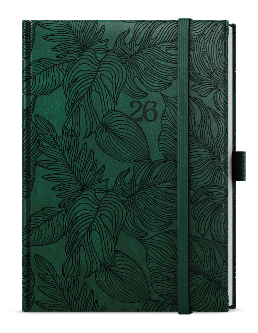 Týdenní diář v oblíbené vivelle se zelenou celoražbou motivu listů Tropik. Diář v oblíbeném formátu s velkým prostorem pro poznámky a plánování. Kalendárium: Týdenní Počet stran: 128 Formát: B6 Rozměr: 120 x 165 mm Papír: ofset, 70 g/m2 Materiál: jemný hladký materiál, celoplošná ražba motivu včetně ražby roku Vazba: šitá V8, stužka, perforované rožky, vlepená kapsa, gumička, poutko na propisku Individuální úpravy Diář je možné individuálně upravit. Nejčastější úpravy jsou potisk (dle materiálu slepotisk, ražba, sítotisk apod.), vlepení reklamního listu, dotisk loga na vnitřní listy nebo třeba vložení diáře do papírové krabičky. Možné jsou samozřejmě i další úpravy. Obvyklý minimální počet diářů pro tyto úpravy je 30 - 50 kusů. V případě zájmu o jakoukoliv úpravu nás kontaktujte na e-mail zobac@papirnictvioskarek.cz nebo telefonicky na tel. 608 939 293. Rádi s Vámi probereme veškeré možnosti. Zakupte produkt Týdenní diář 2026 Baloušek B6 Prokop - Vivella extra - tmavě zelená - Tropik z kategorie Kalendáře, diáře | Diáře 2026 | Týdenní 2026 | Obrázková obálka od výrobce Baloušek za cenu 165 Kč.