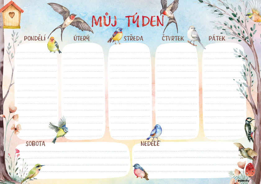 Strukturovaný přehled týdne, který vám pomůže lépe rozvrhnout čas. Nabízí prostor pro pracovní úkoly, schůzky i osobní poznámky. Skvělý nástroj pro každodenní organizaci bez stresu. lepená vazba, ofset, 90 g/m2, 100 stran Zakupte produkt Týdenní plánovač A4 - Ptáčci z kategorie Kalendáře, diáře | Plánovací mapy, doplňky apod. od výrobce Baloušek za cenu 94 Kč.