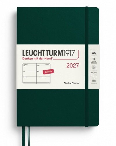 Týdenní plánovač Forest Green, Medium A5 2027, anglicky