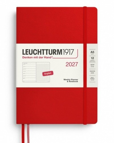 Týdenní plánovač Zápisník Cherry, tečkovaný Medium A5 2027, anglicky