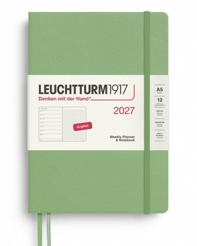 Týdenní plánovač Zápisník Sage, tečkovaný Medium A5 2027, anglicky