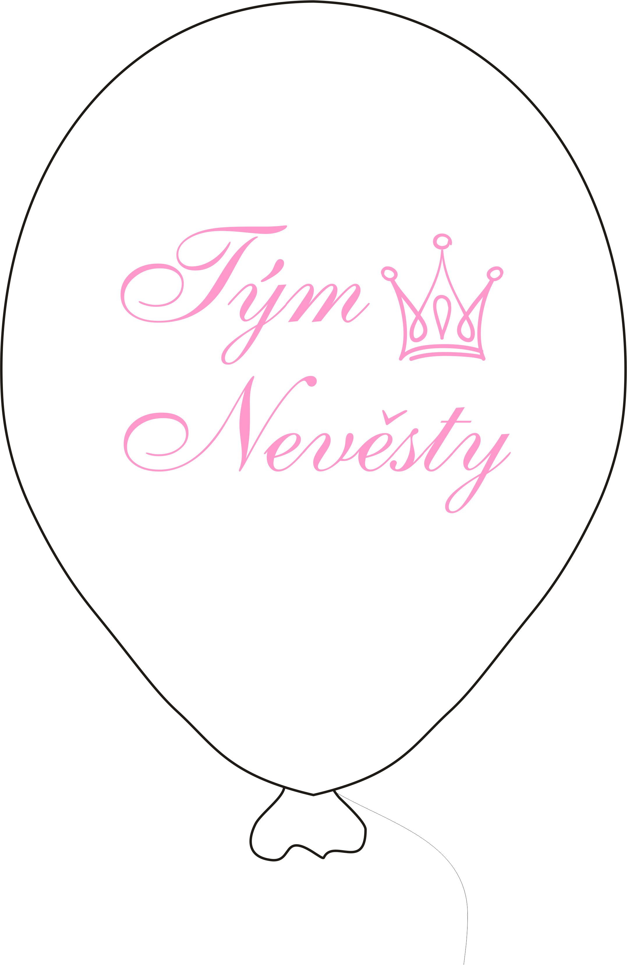 Balónek bílý - průměr 27 cm, objem 10 litrů s potiskem "Tým nevěsty". Dekorace pro budoucí nevěstu na rozlučkový večírek. Balónek můžete nafukovat vzduchem anebo heliem.