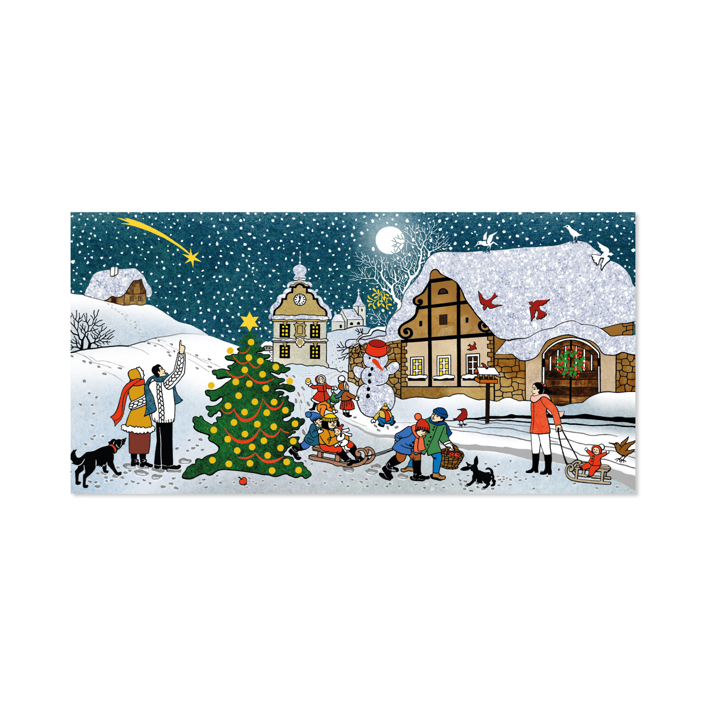 Vánoční přání, orientované na šířku, s ilustracemi od akad. malířky Lenky Vojtové. Uvnitř najdete krátký text a místo pro vlastní věnování. Text uvnitř přání: Krásné Vánoce, spoustu milých dárečků i kouzelných okamžiků a šťastný nový rok přeje... Součástí balení je i bílá obálka. Rozměry: 20 × 10 cm