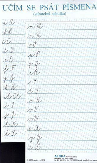 Stíratelná tabulka A4 :- psací písmo- velká abeceda- malá abeceda K popisování můžete využít např. stíratelné značkovače Centropen 2507