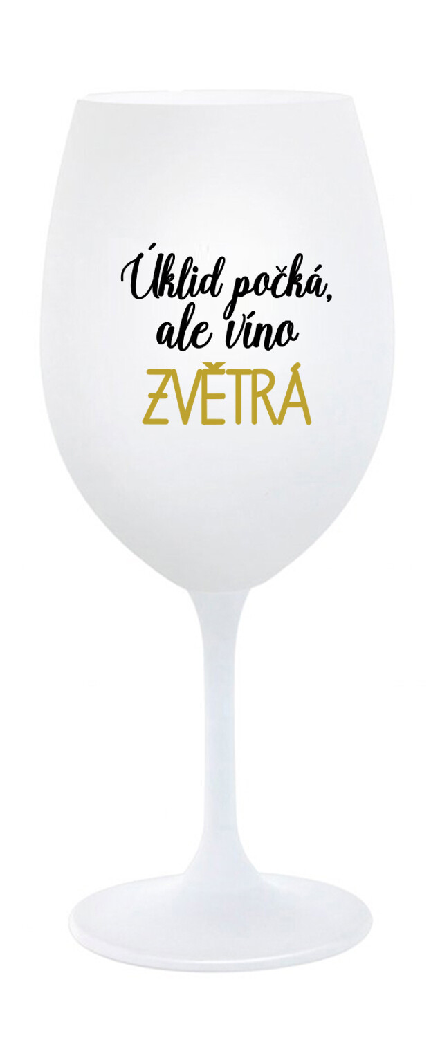 Vinná bílá sklenice s originálním motivem ÚKLID POČKÁ, ALE VÍNO ZVĚTRÁ je krásným a osobitým dárkem, které ale využijete i Vy sami třeba ve chvílích, kdy si budete chtít zpříjemnit náročný den. Tyto originální vinné sklenice jsou totiž nejen pro výjimečné události, ale i pro běžné večery, které si chcete zpříjemnit sklenkou dobrého vína. Jistě proto potěší každého milovníka vína, i toho, kdo si umí svůj život vychutnat plnými doušky.
