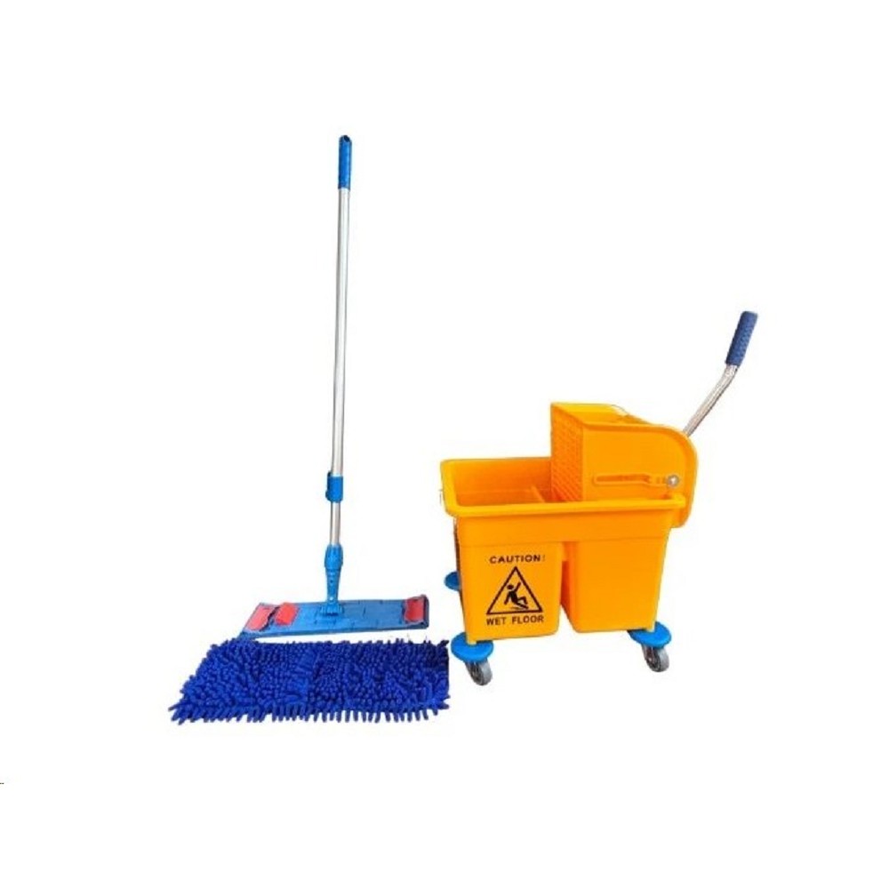 ÚKLIDOVÝ SET 24 - Novinka Dvoukomorové vědro (čistá / špinavá voda) pro hygienický úklid Integrovaný ždímač – snadné ždímání bez namáčení rukou Kompaktní rozměry, ideální pro menší a střední prostory 4 otočná kolečka pro snadnou manipulaci Odolný plast + výstražný symbol „Caution – Wet Floor“ Součástí setu je magnetický držák mopu flipper, žinylkový mop flipper a teleskopická tyč, kterou lze vysunout až do 160 cm.Detailní popis produktu- Objem: 24 litrů (2x12 l)- Materiál: odolný plast + kov - Materiál: odolný plast + kov - Přepážka: pevná - Ždímač: plastový, pákový plochý, odnímatelný - Kolečka: 4 otočná s pogumováním - Ocelové ucho s madlem pro snadné přenášení Držák mopu flipper magnetický 40 cm Rozměry vozíku: 60x32,5x66,5 cm Teleskopická tyč 2x80 cm