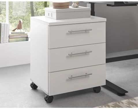 Univerzální úložný kontejner na kolečkách v bílé barvě má 3 zásuvky a můžete ho umístit přímo k psacímu stolu anebo ho využít samostatně kdekoliv v místnosti.