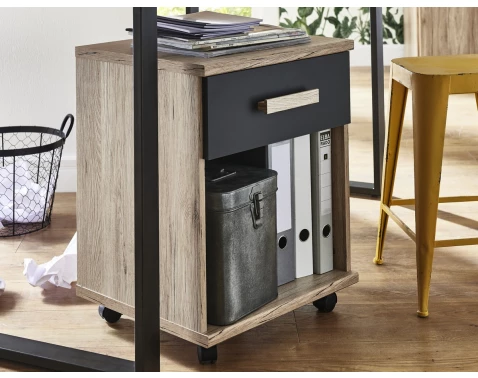 Úložný kontejner na kolečkách z programu Cariba v kombinaci dekoru dub san remo/grafitový. Vhodný pro vybavení jakékoliv pracovny i dětského pokoje.