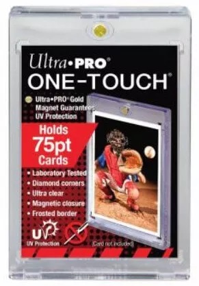 Jedná se o jeden plastový tvrzený obal, který se uzavírá pomocí magnetu. Obal otevřete, do něj vložíte jednu, či více karet a opět uzavřete. Vhodné např. pro velmi cenné karty, či na výstavku. Vnitřní šířka je 75pt, což je tak na 1-4 karty. V tomto obalu lze kartu i bezpečně poslat poštou. Tento obal chrání kartu před UV zářením, tj. nežloutne, ani se jinak nepoškozuje slunečním zářením. Materiál je vysoce průhledný a tak karta opravdu vynikne svými přirozenými barvami. Pokud potřebujete své nejcennější karty v One-Touch pevném obalu často přenášet, doporučujeme chránit One-Touch Holder před poškrábáním v opakovaně uzavíratelných sáčcích One-Touch. Hledáte-li ideální uskladnění pro vaše nejcennější karty v One-Touch Holderech, podívejte se na stránky do alba UltraPro One-Touch Display, které jednoduše vložíte do 3-kroužkových alb.