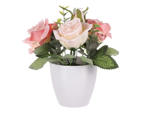 Elegantní umělé růžičky v růžové barvě v kombinaci s plastovým obalem budou tvořit nádhernou trvalou dekoraci, která oživí váš domov. Květina vypadá velmi realisticky a vynikne na okenním parapetu, stole nebo jakémkoli jiném viditelném místě. Výška 20 cm.