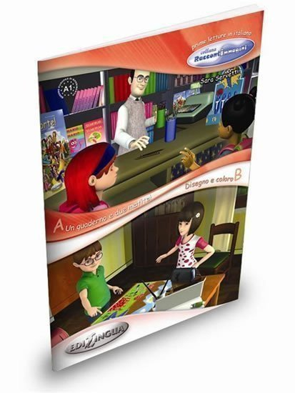Raccontimmagini e una collana per l?insegnamento dell?italiano rivolta a bambini stranieri (6-11 anni). Consta di 5 volumi di livello A1-A1+ del Quadro Comune Europeo di Riferimento. Ogni libro presenta due storie illustrate, seguite da una sezione di esercizi e di giochi collettivi per il riutilizzo del lessico incontrato. Ogni racconto presenta parole nuove, espressioni e frasi utili al bambino per comunicare e compiere alcune semplici azioni quotidiane.In Un quaderno e due matite la protagonista, prima di andare a scuola, compra un quaderno e due matite in un negozio, dove incontra una nuova amica. La storia propone i numeri da 1 a 20 e il lessico relativo agli oggetti scolastici.In Disegno e coloro due bambini fanno un disegno e lo colorano insieme, presentando i colori e il lessico relativo agli elementi del paesaggio che hanno disegnato.