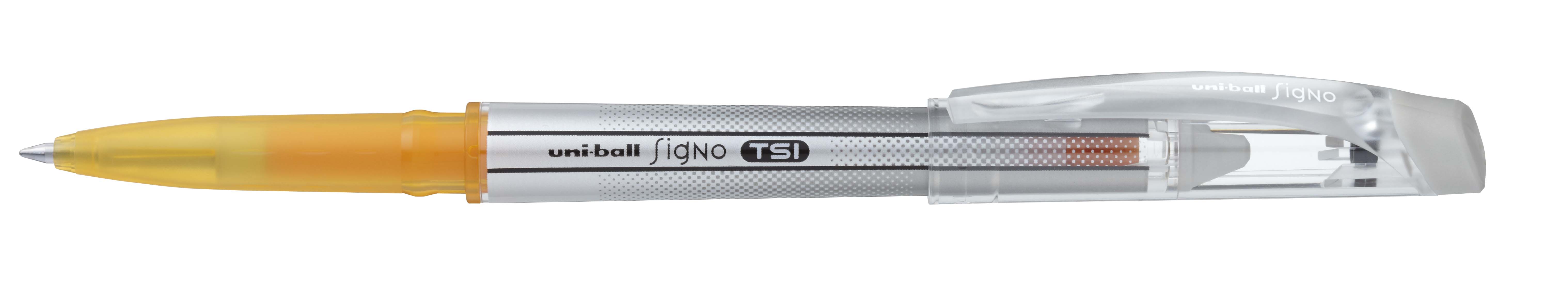Jedná se o špičkové gelové pero Uni ball, které se vyrábí v Japonsku. Inkoust je silně pigmentový, rychleschnoucí (nehrozí rozmazání obrázku), má charakter dokumentačního inkoustu. Hrot je tenký, ostrý, barva z něj zvolna vytéká, kontakt s papírem je velmi příjemný. Pero má dlouhou životnost. Z obou stran je pero opatřené gumou (tvrdší a měkčí), která umožňuje zcela vymazat stopu na papíře. Pero je výborné jako první i následná pera pro nácvik psaní dětí na prvním stupni. Cena je za 1 ks.