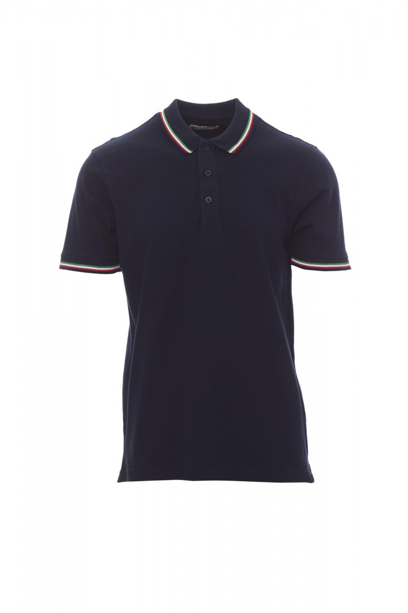 Unisexová polokošile s krátkým rukávem se 3 sladěnými knoflíky, kontrastní lemování v barvě italské trikolóry u krku a na rukávech, žebrovaný lem u krku a na rukávech, postranní rozparky se zesílenými švy, zakryté prošití límečku, postranní vyztužovací páska, pružné švy, tvarovaná výztuž na spodní straně límečku.