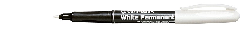 Univerzální bílý značkovač píše na většinu povrchů po zaschnutí odolá za sucha otěru na porézních površích permanentní světlostálý inkoust vodní báze skladovat ve vodorovné poloze válcový hrot 2,5 mm šířka stopy 1,2 mm Zakupte produkt Univerzální bílý značkovač Centropen 2686 z kategorie Psací potřeby | Popisovače, značkovače | Permanentní od výrobce Centropen za cenu 28.5 Kč.