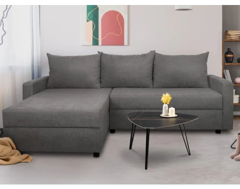 Rohová sedací souprava Glam, černá látka, levý roh
