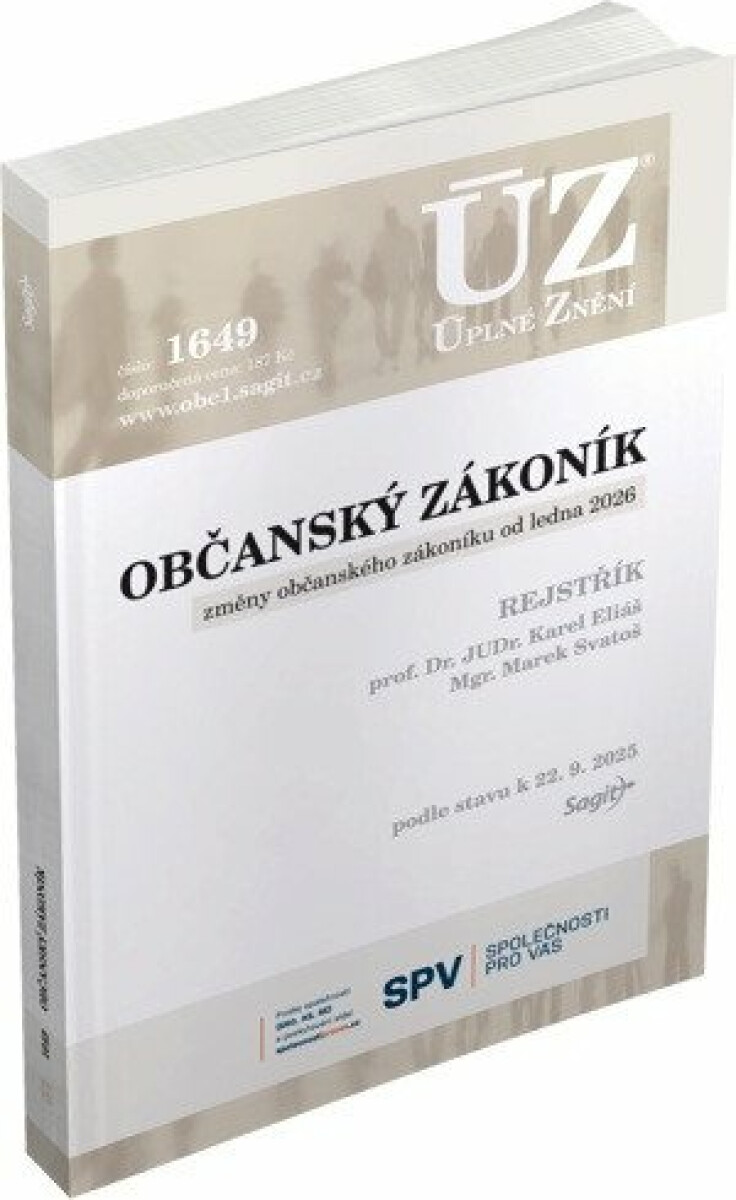 Od ledna 2026 dochází k dalším změnám občanského zákoníku (rozvod manželství, poměry dítěte po rozvodu, nepřijatelnost tělesného trestání dětí a další změny). Kromě toho byl občanský zákoník aktualizován také již v průběhu roku 2025 (partnerské vztahy osob stejného pohlaví, finanční služby, výkon práce žáky a studenty, domácí násilí, a další změny). V novelizovaném textu publikace jsou všechny změny zvýrazněny tučně. Pro orientaci v rozsáhlém zákoníku byl aktualizován také podrobný věcný rejstřík, který zpracoval prof. Karel Eliáš a Mgr. Marek Svatoš.